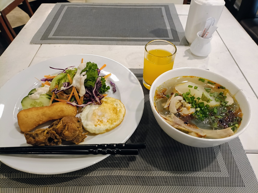 今回は朝食付きで宿を取ったので,朝ごはんからスタートです.麺大国だけあって,朝食でも調理したての麺が頂けます.野菜が美味しいベトナムですが,サラダのような生野菜は日本のほうが良いです.