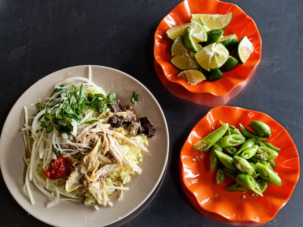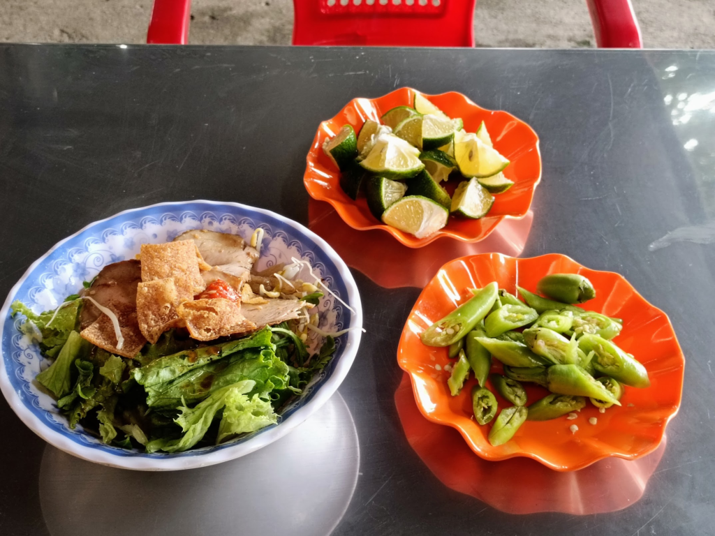 いずれもホイアン名物のカオラウ(米粉を使った混ぜ麺)とコムガー(鶏飯)を頂きました.お好みでライムを絞って,唐辛子を加えます.それぞれ,35,000, 40,000 VNDと観光地にありながら良心的な価格です.