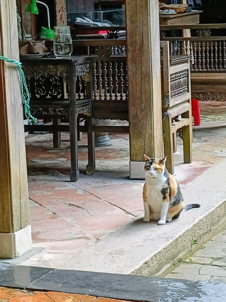 家の奥から猫が出てきて,よそ者を警戒していました.