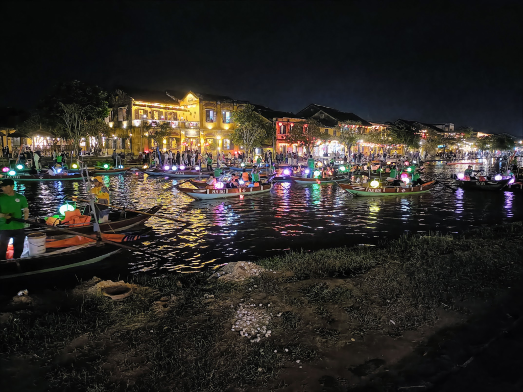 ホイアンと言えばランタンが有名です.トゥボン川はランタンを流す観光客で渋滞気味でした.