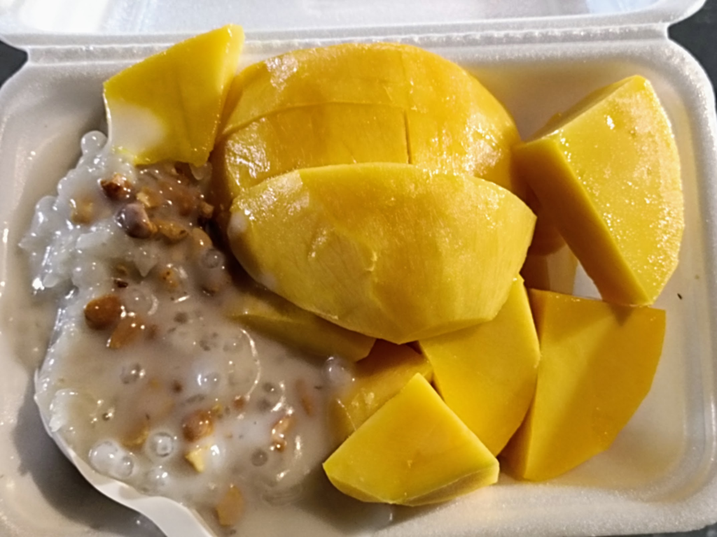 屋台街を歩いているとカオニャオ・マムアン(タイ語)を発見,もちろん頂きました.因みに,ベトナム語ではソイ・ソアイと言うようです.マンゴー大盛りで80,000 VND.