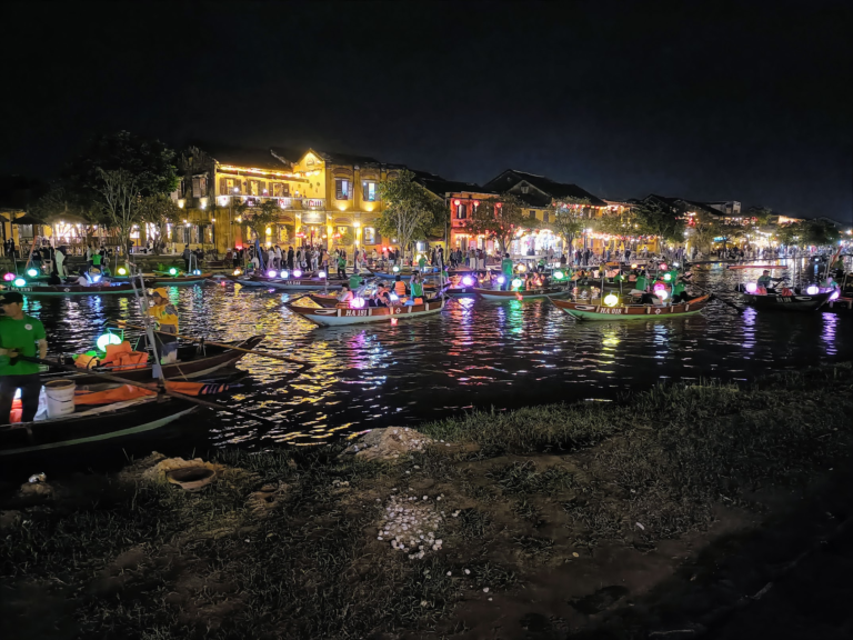 ホイアンと言えばランタンが有名です.トゥボン川はランタンを流す観光客で渋滞気味でした.