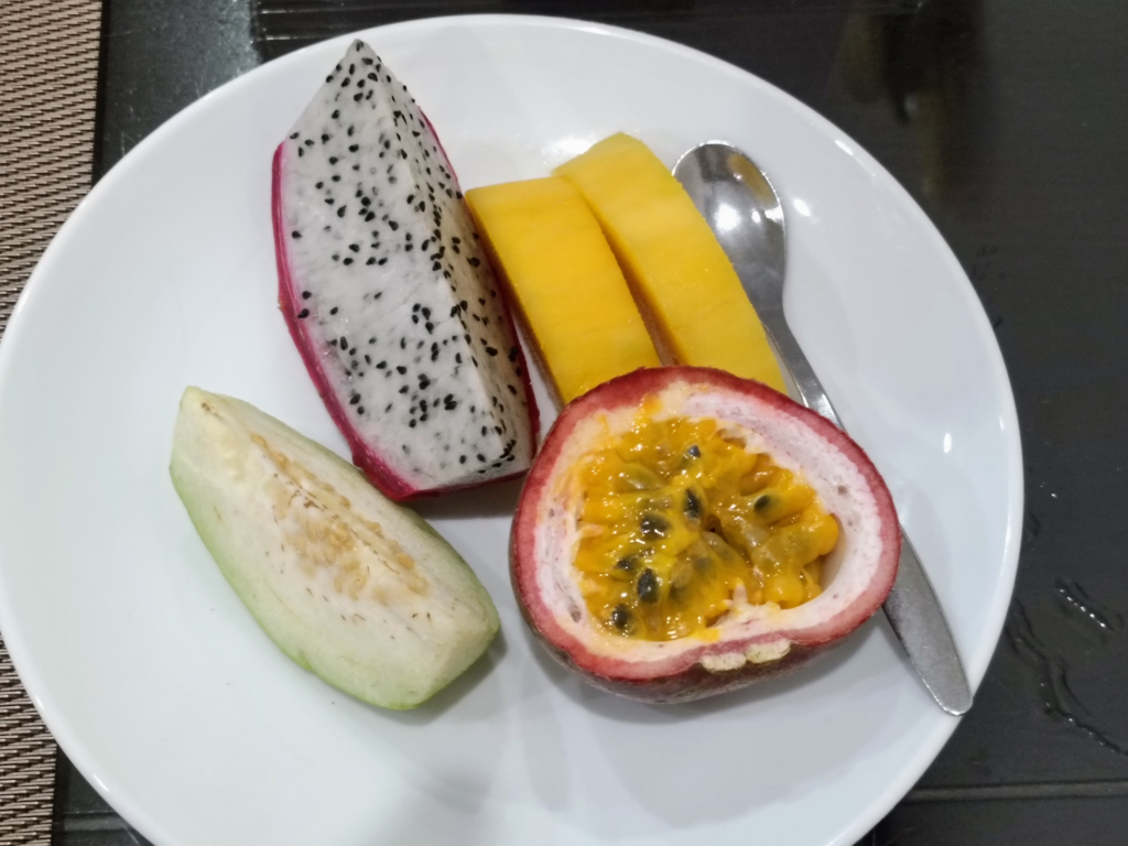 今朝も宿の朝食でスタートです.果物は日本で頂けないものばかり.パッションフルーツをプレーンのチューハイに入れると最高のカクテルになります.