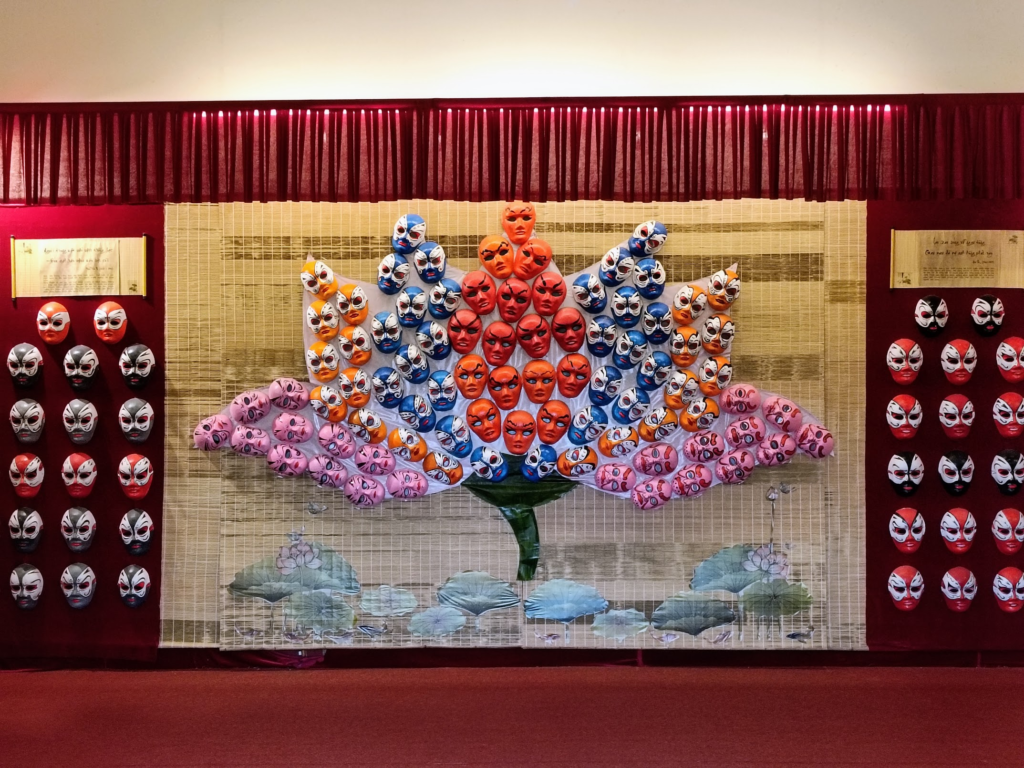 王宮入口,正面は閉じられており右側の通路から入ります.入って少しのところにある建物,よく見ると漢字で色々書かれています.これだけ見るとベトナムだとは思わない.