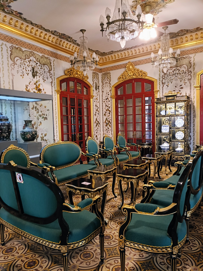 こちらは建忠殿 Điện Kiến Trung.建物内には美しい調度品.