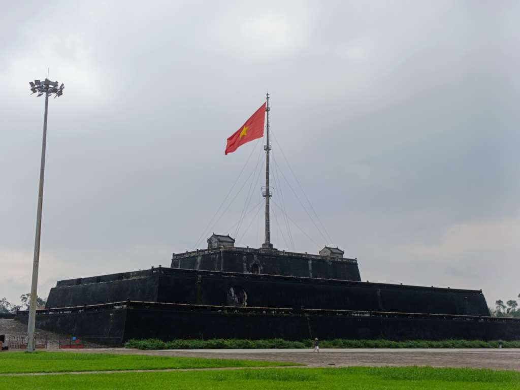 王宮に来た人は目にするであろうフラッグタワー.ベトナム国旗が誇らしげにたなびいていましたが,なかなか上手く撮れません.