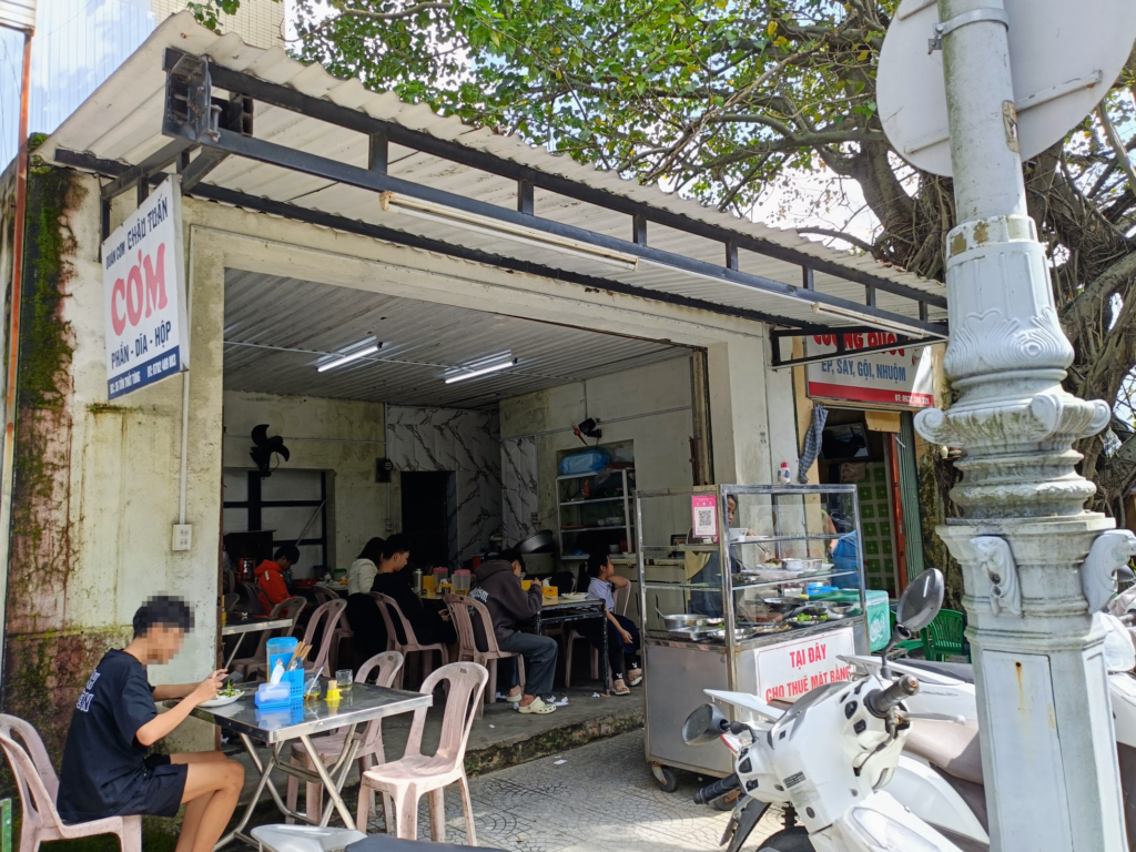 次はトゥドゥック帝陵を目指し走り出しましたが,手持ち現金が少ないためATMに立ち寄りました.向かいに見掛けたローカル食堂でお昼を頂くことに.