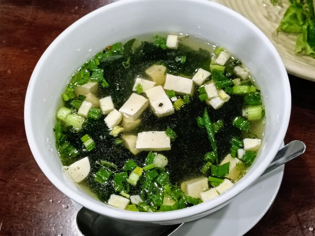 合わせて注文したCanh rong biển 味噌汁.味噌感は少なかったです.40,000 VND. 全て美味しく頂きました.食後にフエ市街をドライブしてから,宿に戻りバイクを返却しました.シャワーを浴びたら昨夜と同じバーで過ごします.