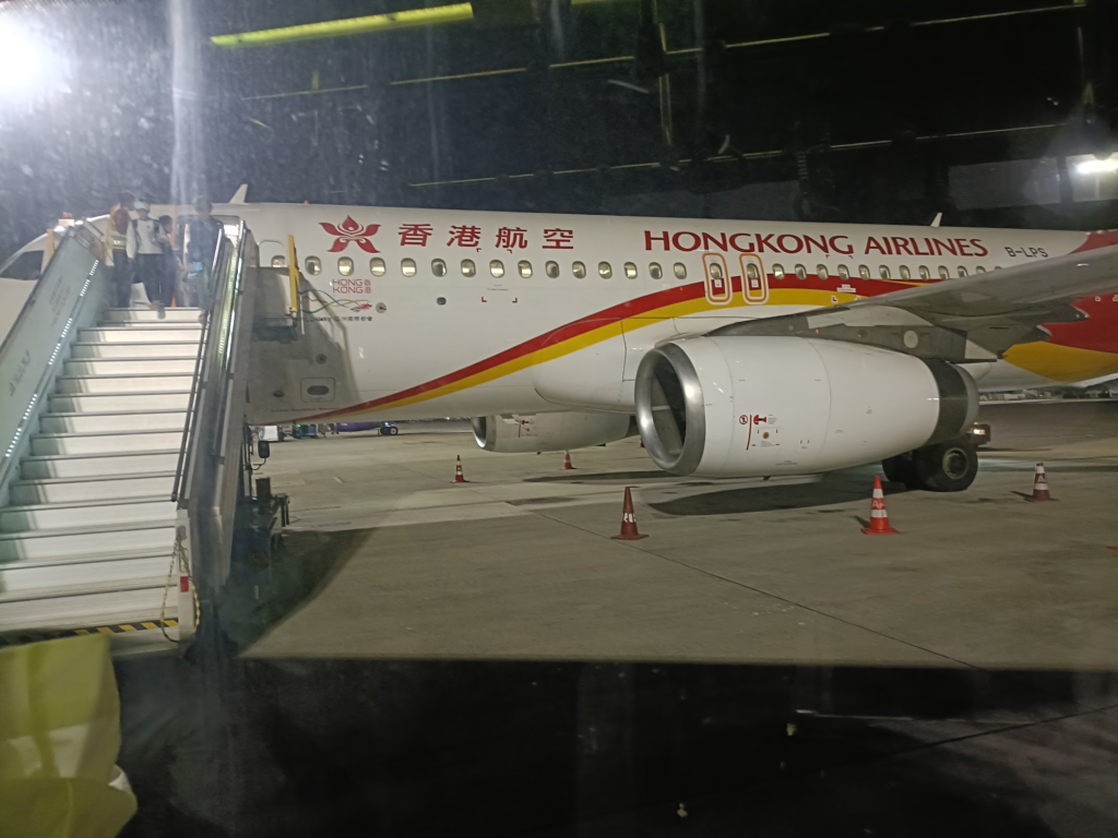 香港に到着して降機するタイミングで年明けとなり,あちこちで ”Happy new yaer” の声が上がりました.そして,香港空港では初めての沖止めでした.