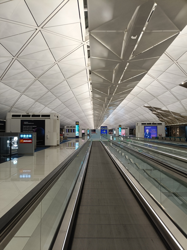 関空への乗り継ぎ便は9時台なので,24時間営業のPlaza Premium Loungeへと向かいます.ラウンジがあるエリアまでシャトルで移動しようとしたら,こんな時間に移動することを不審に思ったのか,空港スタッフに呼び止められました.乗り継ぎ便のチケットを提示して理解してもらえました.誰も乗っていないシャトル.